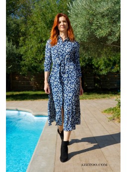 Cette robe chemise fleurie bleue apporte fraîcheur et légèreté...