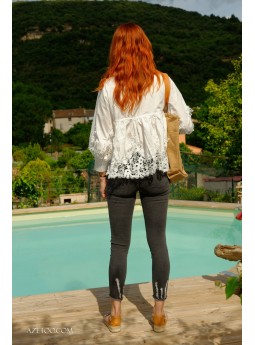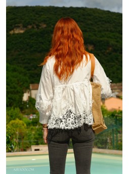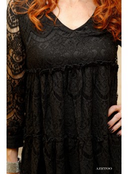 Cette robe courte noire en dentelle brodée séduit par son col...