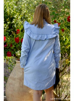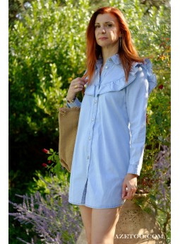Cette robe chemise en jeans clair séduit par sa coupe droite...