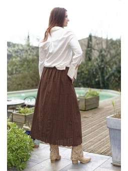 Cette jupe longue plissée en tulle séduit par son fond...