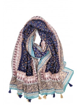 Foulard Doux avec Pompons Bleu