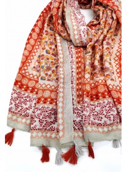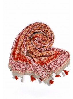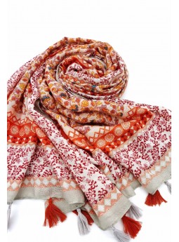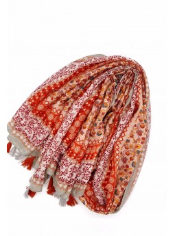 . Foulard doux avec pompons multicolores . Beige . Dimensions...