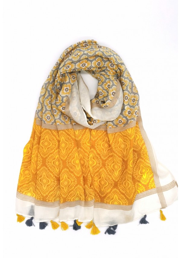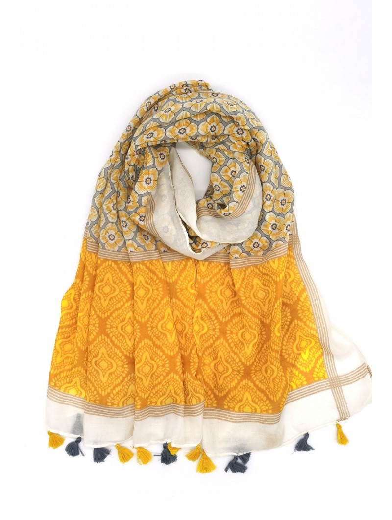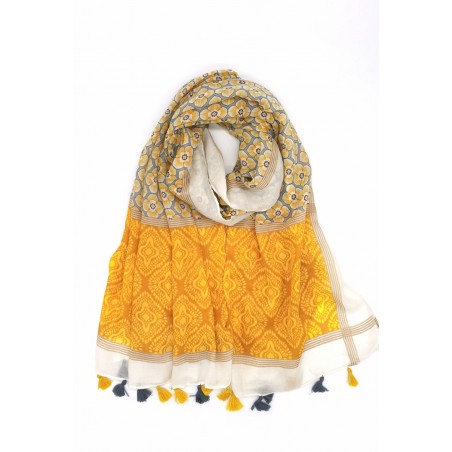 Écharpe Jaune ornée de pompons bicolores