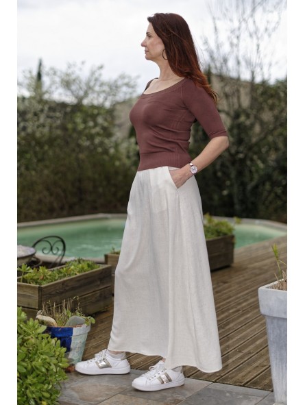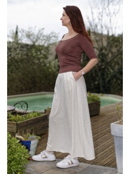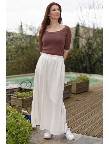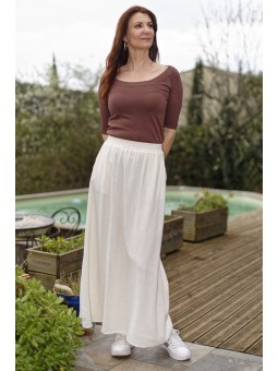 Jupe longue à la coupe fluide, dotée d'une taille élastique confortable et de poches latérales pratiques. Sa matière souple accompagne les mouvements avec naturel pour une silhouette féminine et élégante. Une pièce facile à porter au quotidien, à associer avec une blouse élégante ou un top féminin pour composer une tenue harmonieuse.