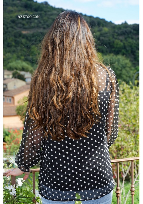 Blouse Noire Brodée de Fleurs Marguerite