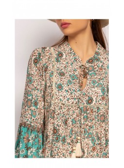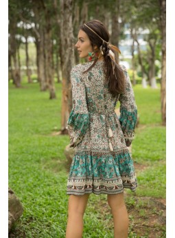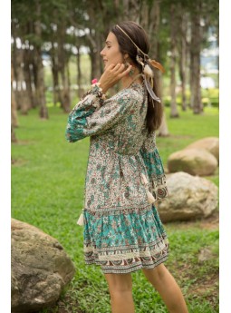 . Robe bohème Fleurie courte avec cordon orné de pompons