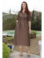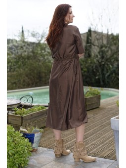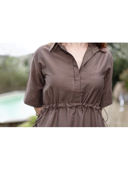 Robe chemise longue à la coupe fluide, structurée par une ceinture ajustable qui marque délicatement la taille. Son tissu léger accompagne les mouvements avec élégance et confort. Une pièce féminine et intemporelle, facile à porter au quotidien comme en version plus habillée.